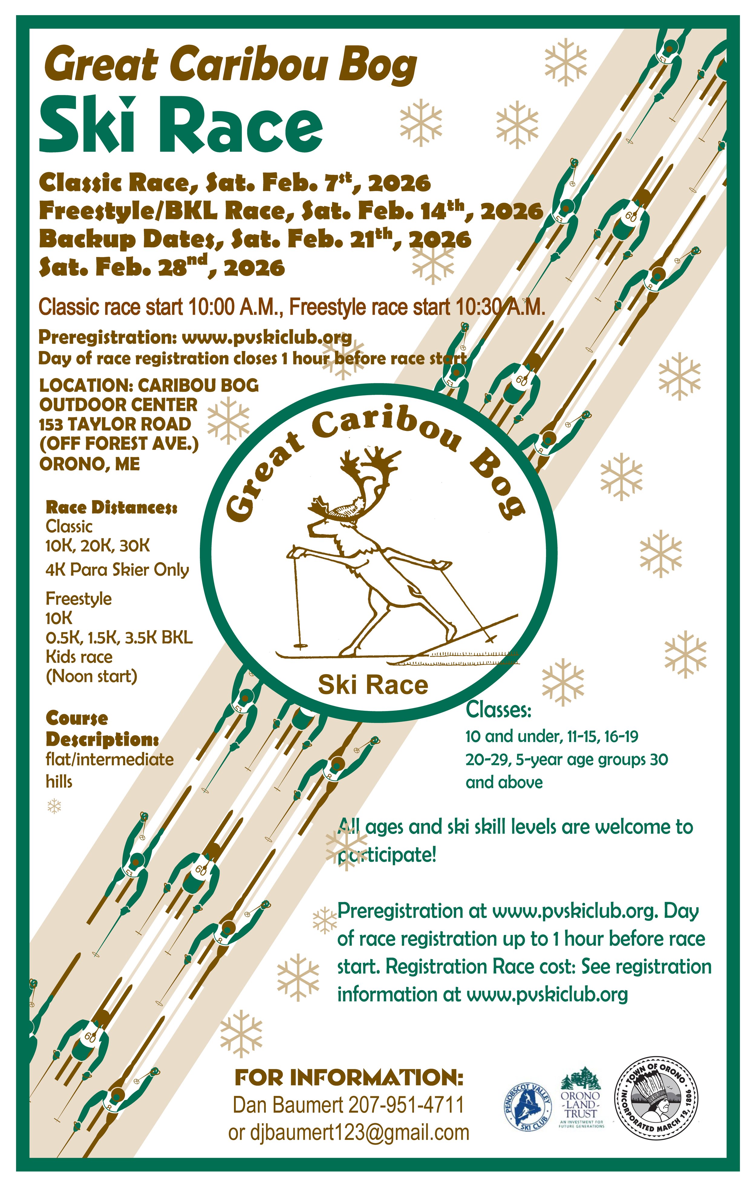 Volunteers are needed for the three Great Caribou Bog Ski Races. Signup for specific volunteer needs can be found HERE